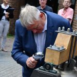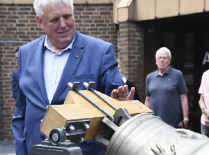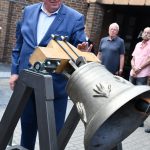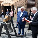 Er läutete die Chorweiler Friedensglocke, nachdem er deren feine Strukturen unter die „Leselupe von Papst Johannes XXIII.“ genommen hat. Ein Eintrag in das Gästebuch der Friedensglocke und der Chorweiler Friedenserklärung durfte nicht fehlen.